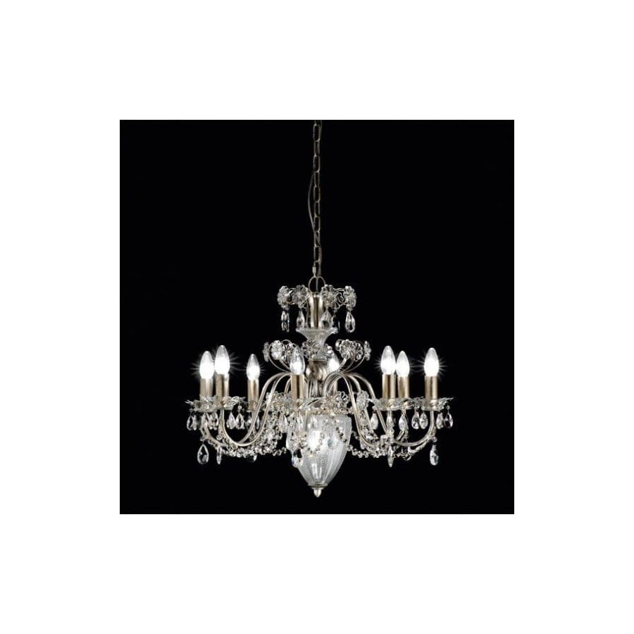 This range is realized in metal enriched with a silver and gold leaf finish and with blowned murano glass. Pleasantly enriched with crystals that gives light and brightness.