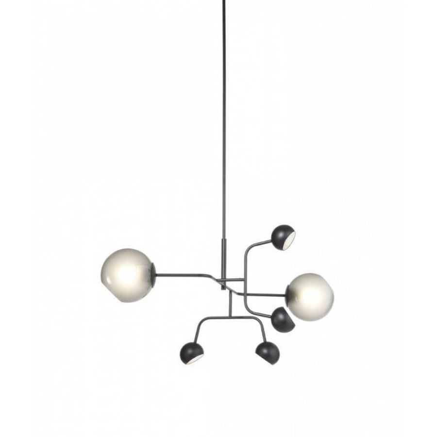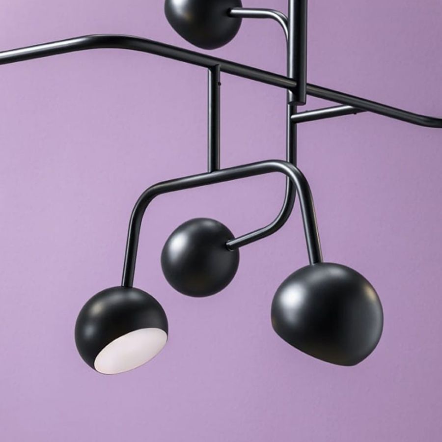Chill evokes the fluid and simple lines of art and design, where graphics blend with simplicity of form. The structures in opaque painted metal, support metal spheres with directional Led lighting and Murano blown glass boule that allow different modes of lighting, diffused and punctual.