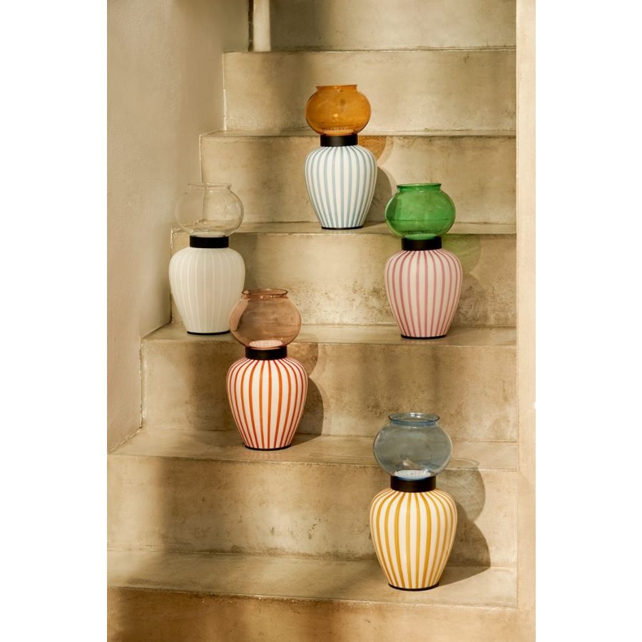 Its shape reminds the old oil lamps and nightstand lights, warm and reassuring objects that give the room an intimate atmosphere, recalling a domestic imaginary. The name Lay- la derives from the Arabic word ىليل (laylah) which means “night” and suggests a use of the lamp in the most intimate spaces: it keeps us company until the moment of sleep.