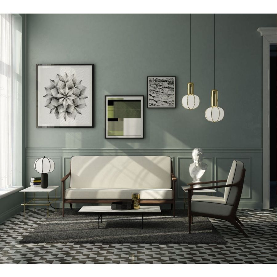 Balloon takes inspiration from the homonymous family of products from our classic production, now presented in a contemporary key. Maintaining the lampshade of the pre-existing version, the structure has been highlighted, which combines gracefully with the ceramic base, combining colours and surface finishes.