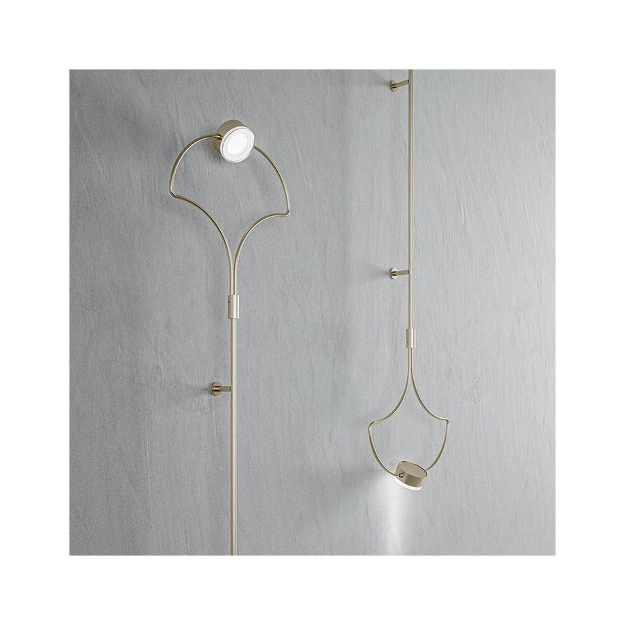 Synthetic and plastic in his form, the classic metal tube is shaped to recall the classic pattern of Art Deco. The metal central body closed by a sandblasted PMMA disc, direct the light uniformly. In the applique the diffuser can be rotated.