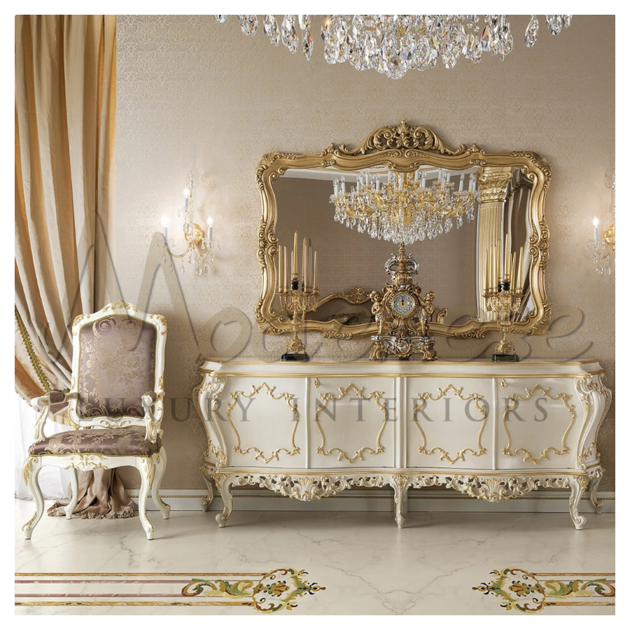 | Finish: | Ivory lacquered, patinated gold leaf details |