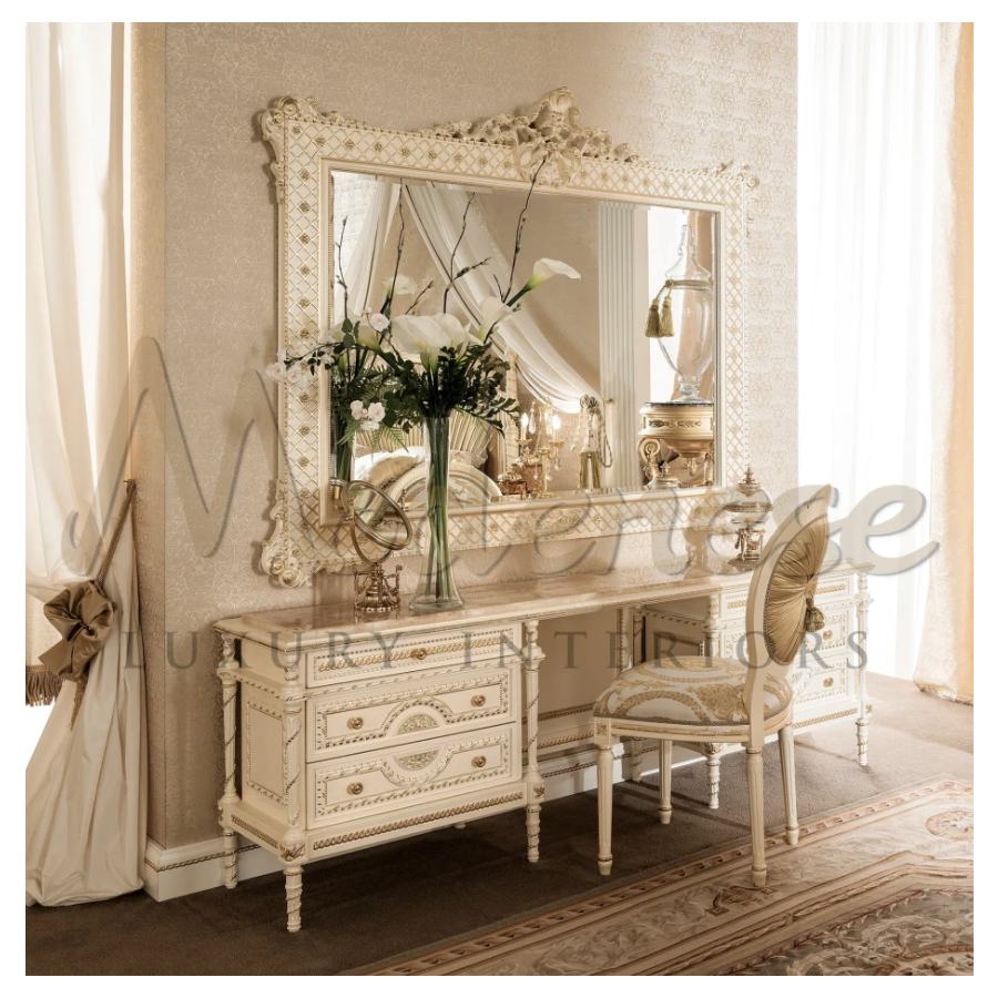 | Finish: | Pearly ivory lacquered finishing, gold leaf details |