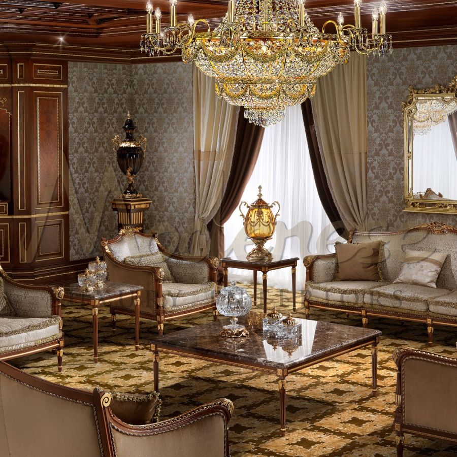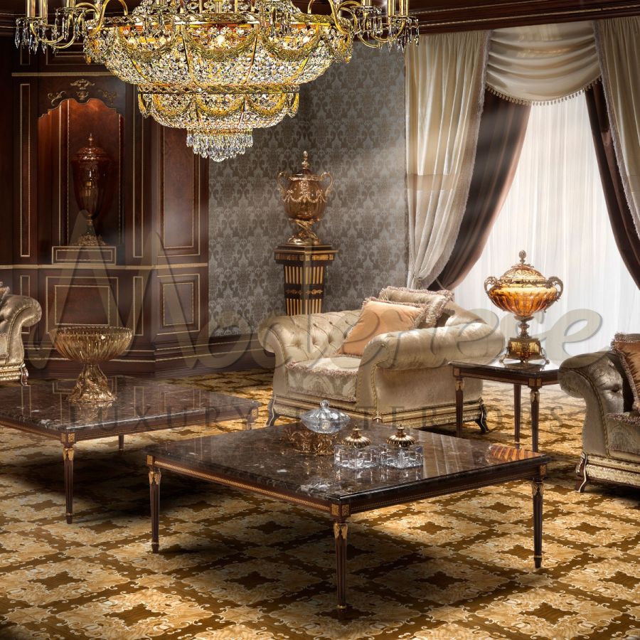 | Finish: | Classic Walnut, Gold Leaf, Emperador Dark marble top |
