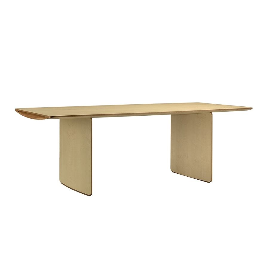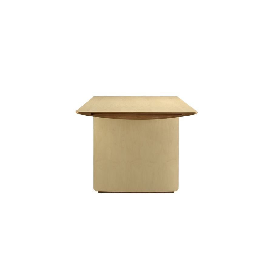 Table with internal wooden skeleton and fine curved maple wood veneer. The construction is inspired by airplane wing structure.
