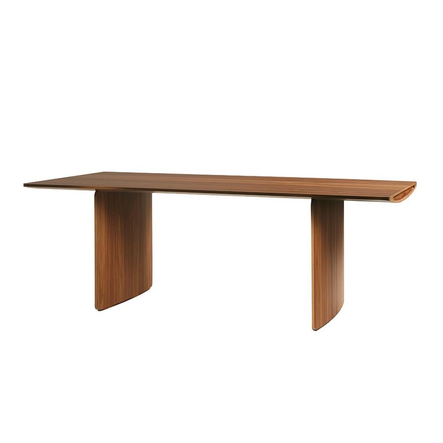 The Aero, designed by Franco Poli for Morelato, is a table consisting of two plywood panels, one of which is curved, joined together. This technique is used both for the top as well as for the feet of the table. In this way, the stability of the table is ensured even if the thickness is considerably reduced.