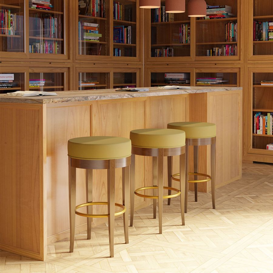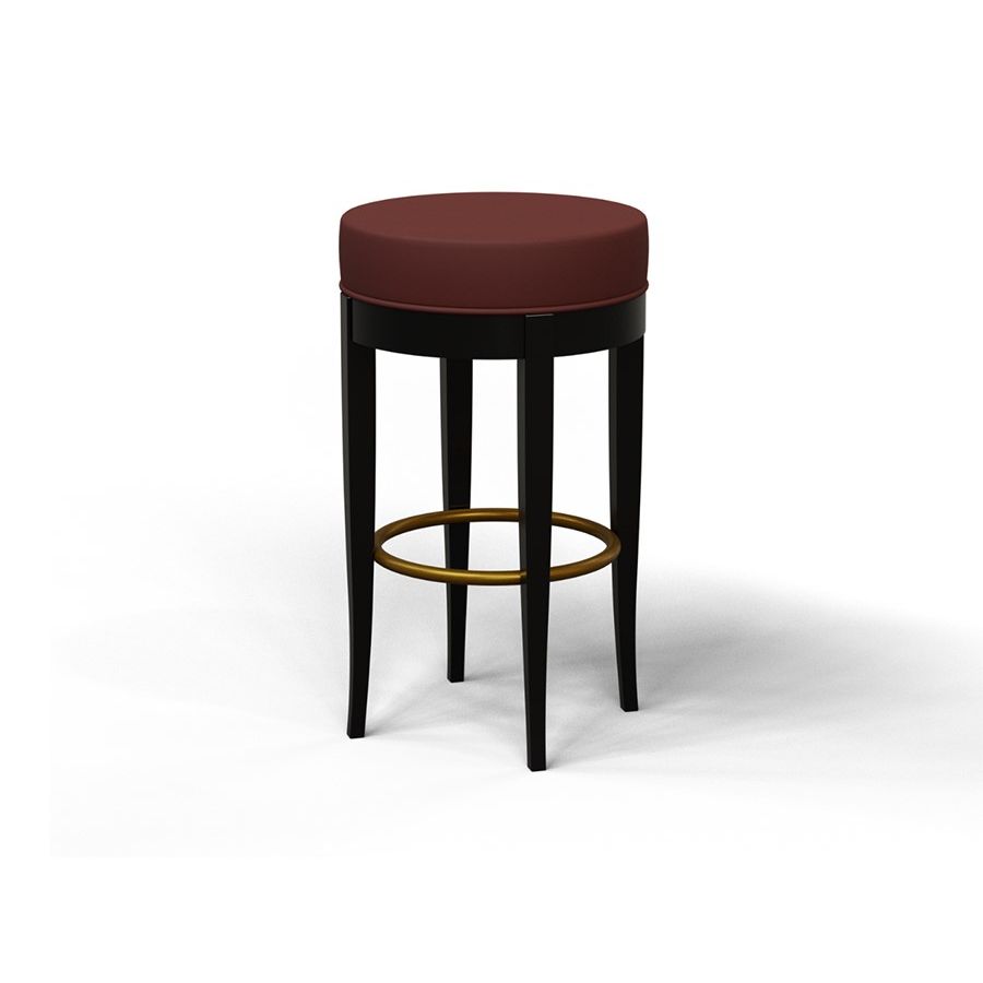 Morelato has enriched its stool collection with this new bar stool in the timeless Biedermeier style. The Biedermeier bar stool has a shaped frame of solid cherry wood and an upholstered seat as well as a round brass footrest.