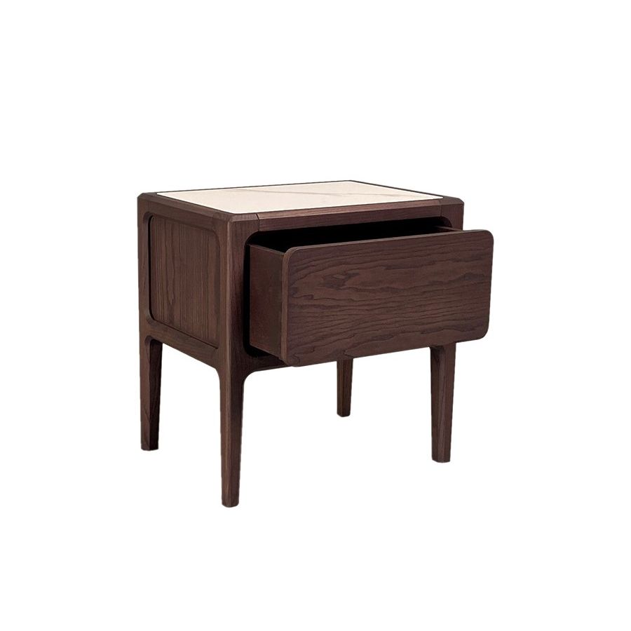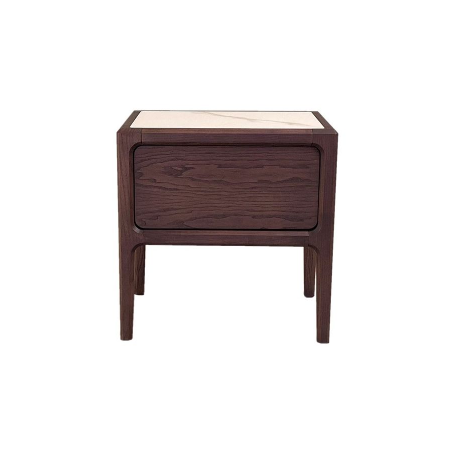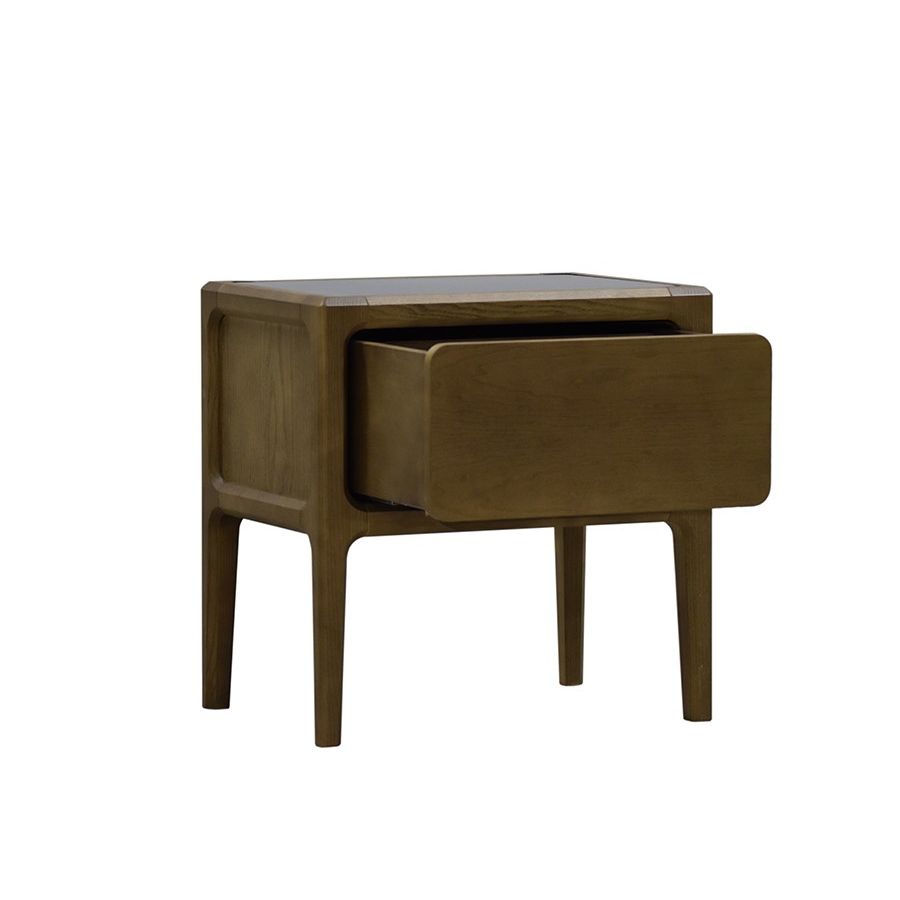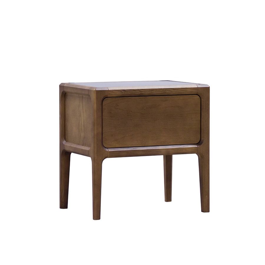 Bedside table made of ash wood with a drawer, top in leather or wood.
