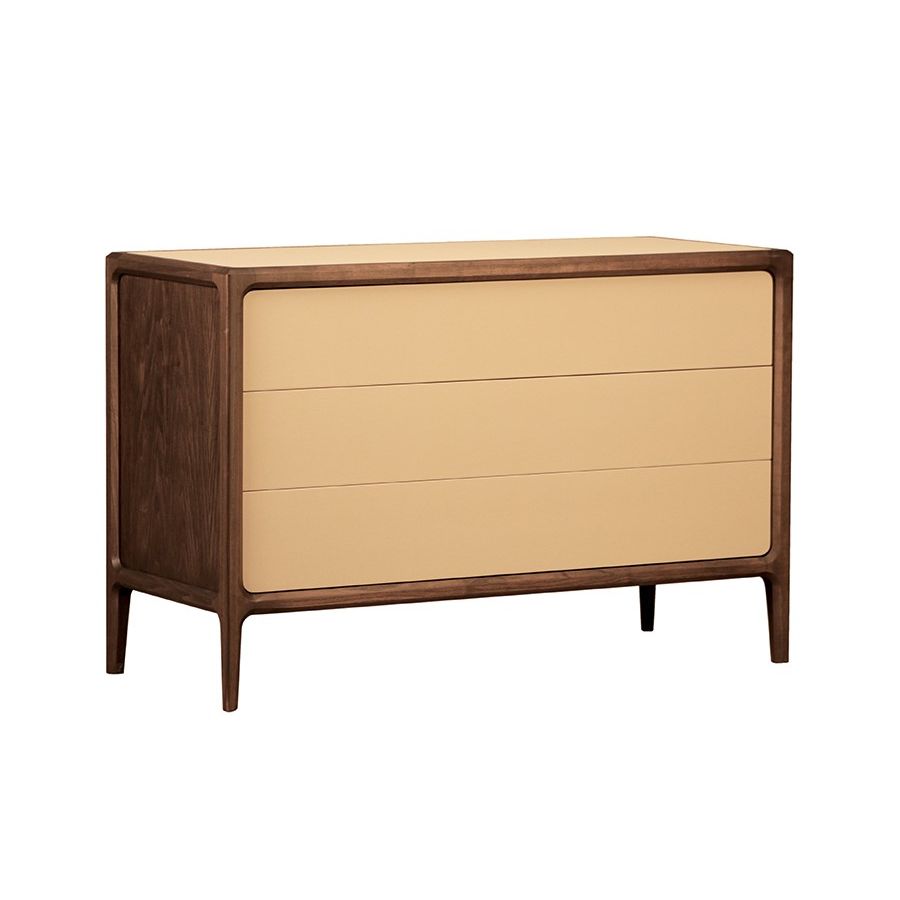 Chest of drawers in ash wood with three drawers with push & pull opening, fronts in wood or covered in leather. On request top in leather or stone.