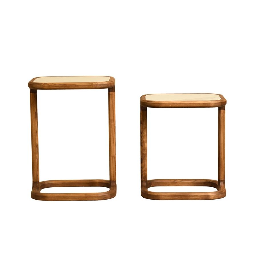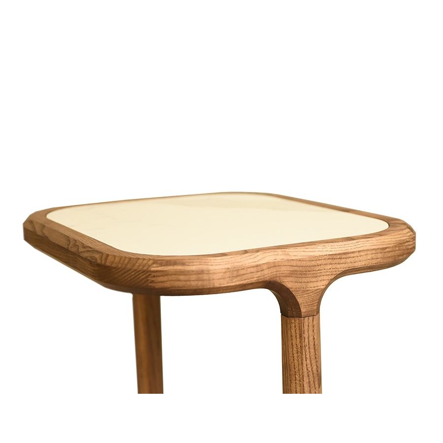 Shaped ash wood coffee table, marble or wood top.