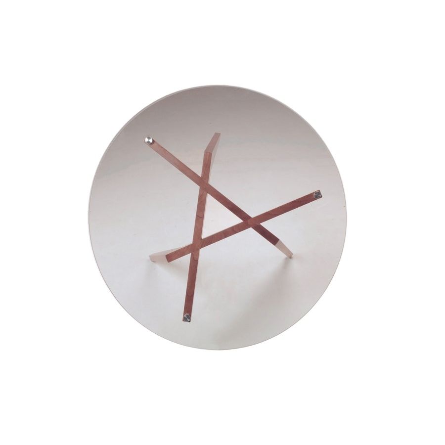 Boomerang is an elegant round table with legs united by special joints and embellished with a glass top, making the table light.