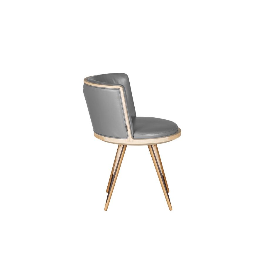 Carambola is a refined, comfortable chair made unique by the original workmanship of the legs. These, tapered and elegant, are made with the classic inlay technique by combining the essences of cherry, maple and wenge, creating a particular “billiard cue” effect . Made of ash wood, the round seat is softly padded and upholstered, while the curved, wrap-around back features a wood-carved handle on the back.