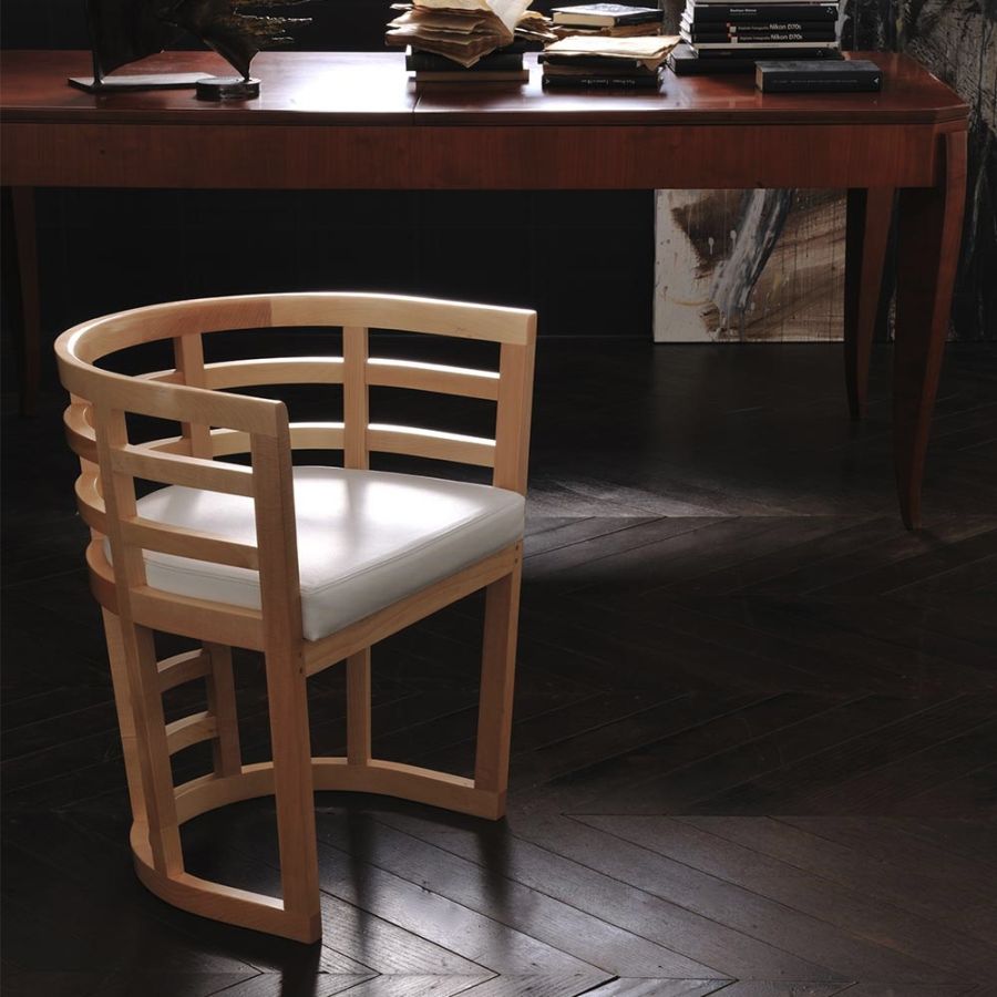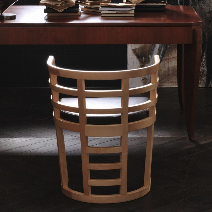 Cartesia is a highly decorative armchair, thanks to its curved maple wood frame, which completely embraces the seat. The compact dimensions allow Cartesia to be adapted in both living and sleeping areas, while the sculptural and light workmanship make it a piece of furniture of sophisticated originality.