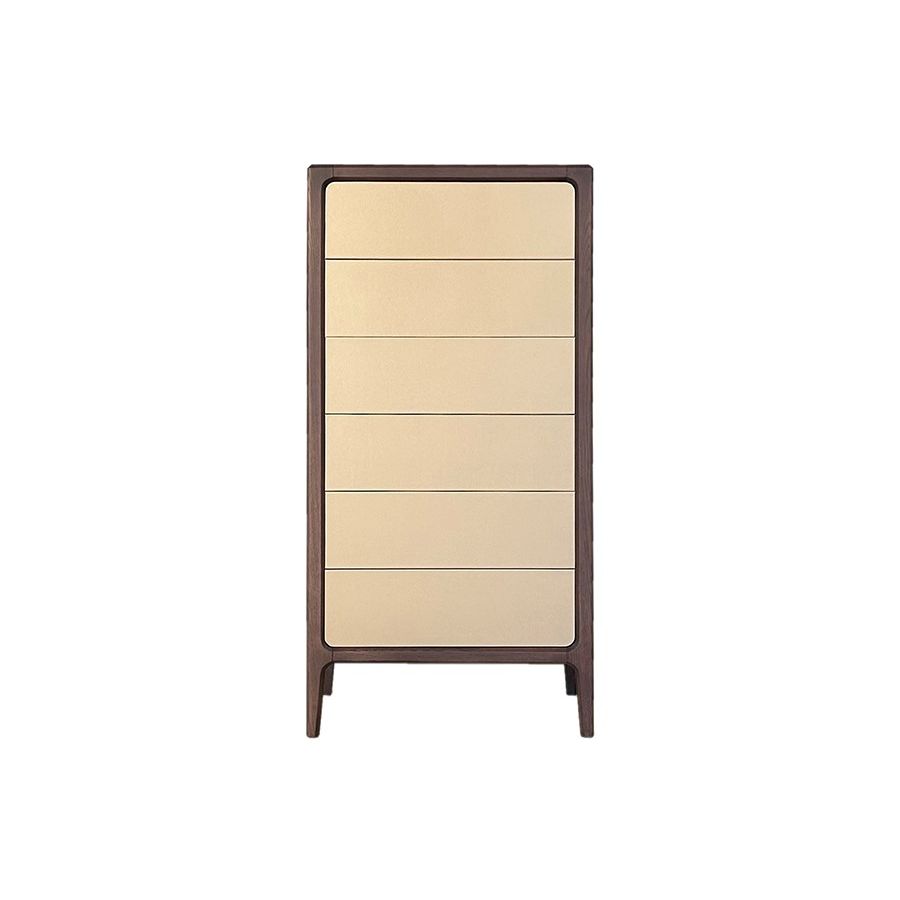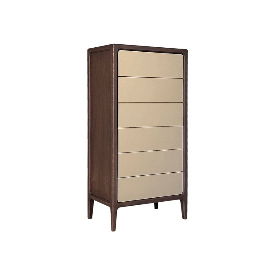 Ash wood chest of drawers with 6 drawers with pushpull opening. Drawer fronts also available with leather upholstery upon request. The wooden top can be customized with ceramic or glass insert. MEASURES: L 70 W 45 H 144 WEIGHT: 50 kg M3: 0,5 PIECES: 1 Production time: 60 days. Shipping included in the price.