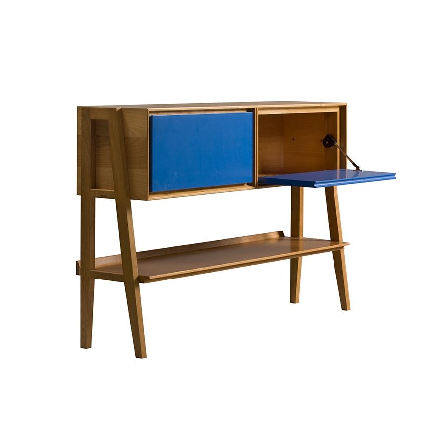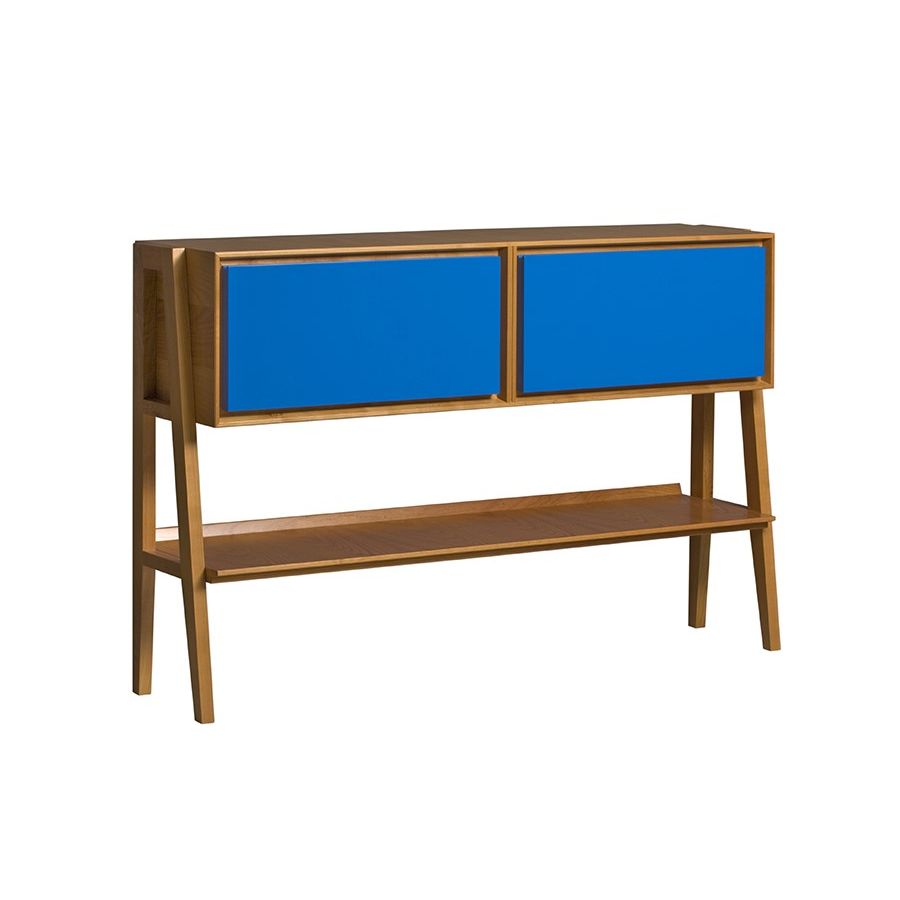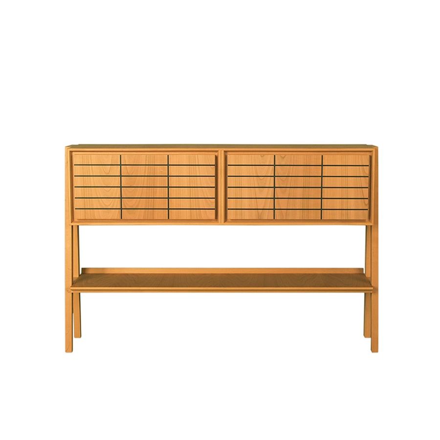 Console table with 1 shelf and 1 Zero structure art.3477, with flap doors art.3455. Cavalletto base frame made of cherry wood. Also available with other Zero doors.