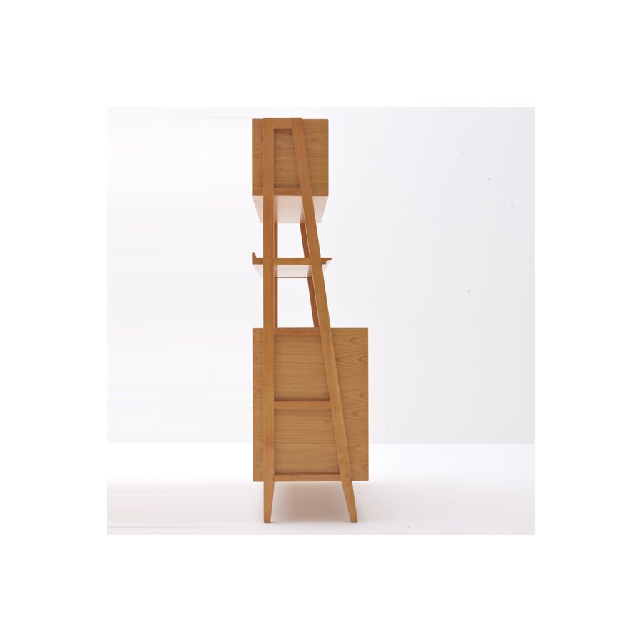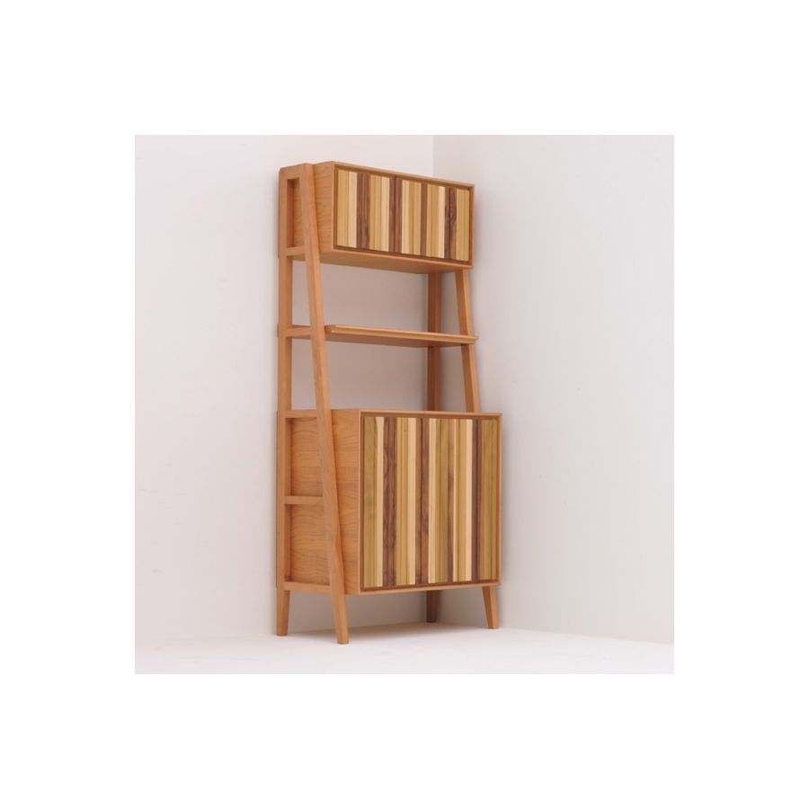 Cabinet made of cherry wood with 2 closed elements and 1 open with shelf. Cavalletto is a sideboard of original design: fresh, playful and simple. It has its origins in the Zero collection, from which it resumes all color and door varieties but to which two side frames have been added giving the piece lightness and balance.
