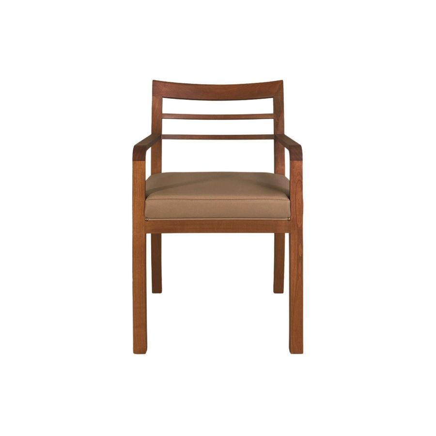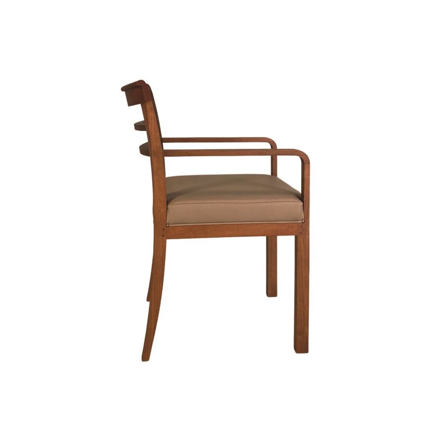 Armchair made of cherry wood with shaped backrest and upholstered seat. Upon request made of walnut wood.