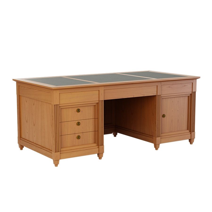 Writing desk made of cherry wood with precious leather top. 4 drawers, 1 PC space and file drawers.