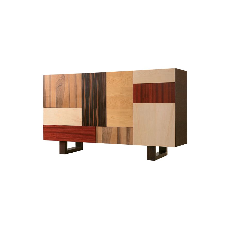 In the Patchwork Collection, small pieces of wood are used in the same way in which offcuts and scraps of wool and fabrics are used to make fabric and blankets. In cabinet making Patchwork stands for the use of small pieces of different wood kinds, which exalt each other in elegant combinations. Duranti has used this technique to create drawers, doors, cabinet doors, flaps and unpredictable openings, which Morelato turned into unique pieces of sideboards, tables, coffee tables and bookcases that will be highlights in different home styles and cultures.