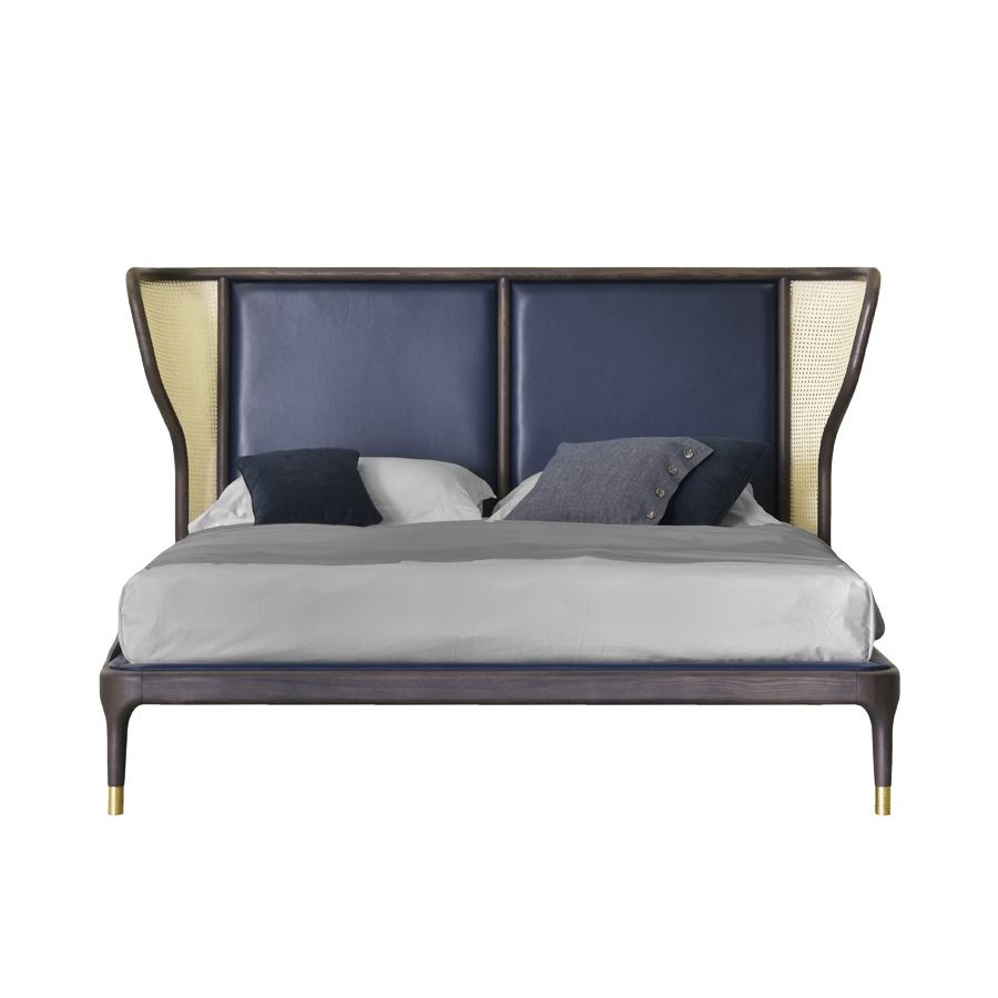 Ash wood bed, headboard with Vienna straw parts and upholstered parts.