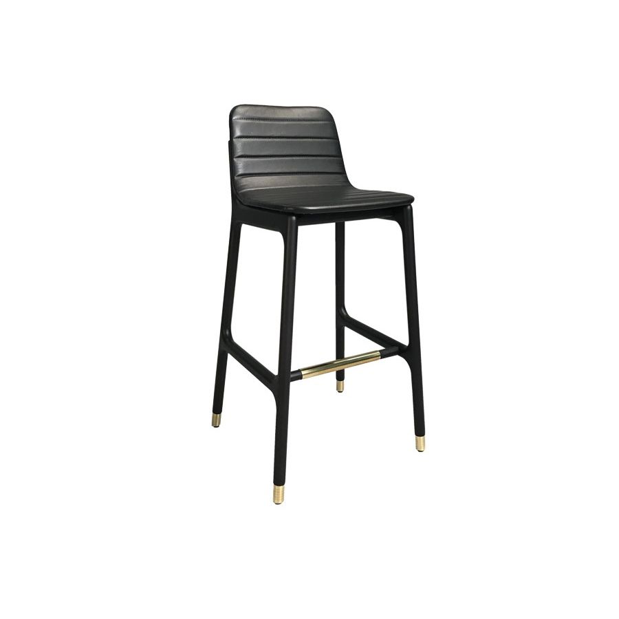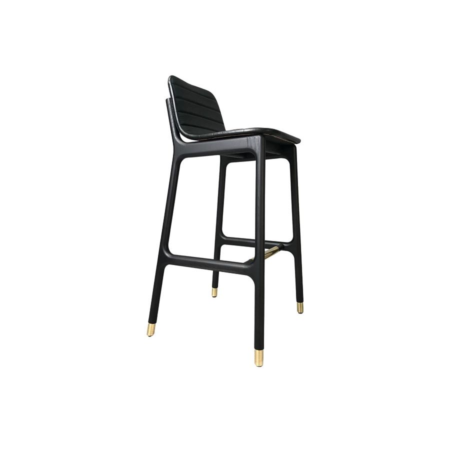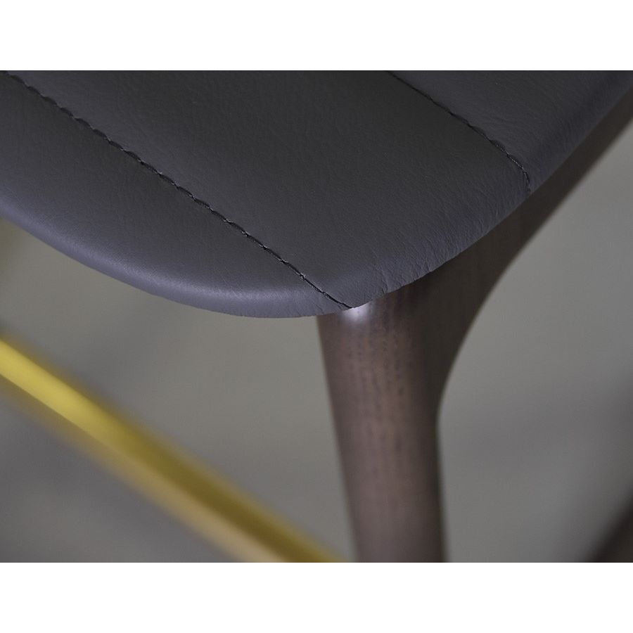 Bar stool in ash wood with upholstered seat and brass tips.