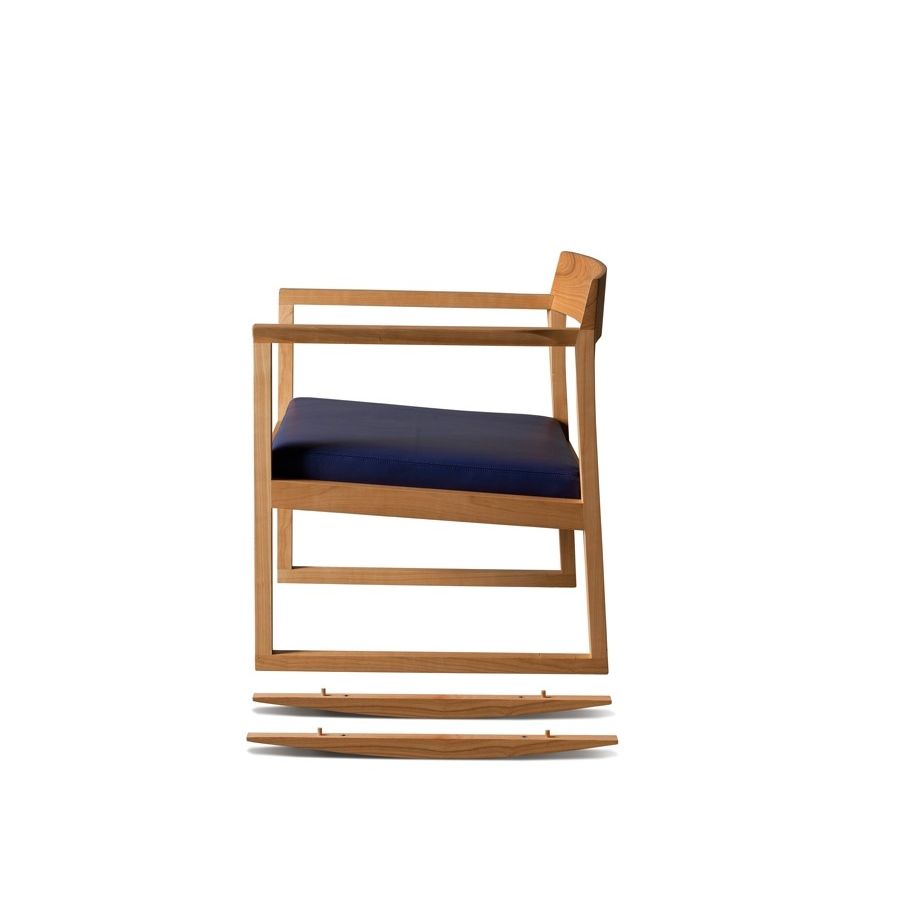 Burton reimagines the classic rocking chair with a contemporary twist. The cherry wood frame is simple, marked by an essential and clean design, but at the same time preciously crafted with joints, making Burton a handcrafted and sought-after armchair. Functional and funny, thanks to its Burton structure it is easily transformable by removing the magnetized skates placed at the base. An ideal armchair for both living and sleeping areas.