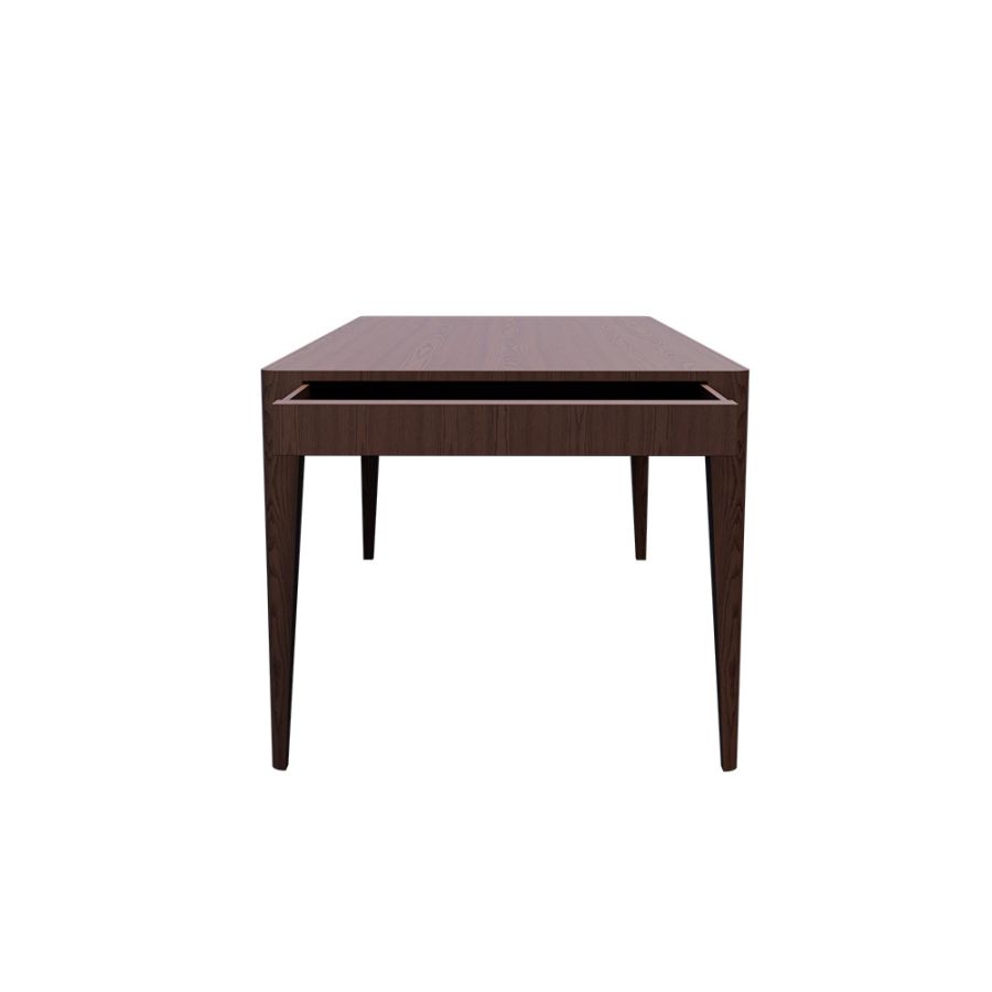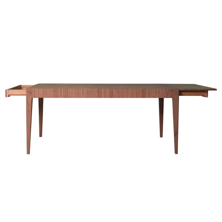 Table made of Ash wood with two big drawers containing 2 extensions of 45 cm each.