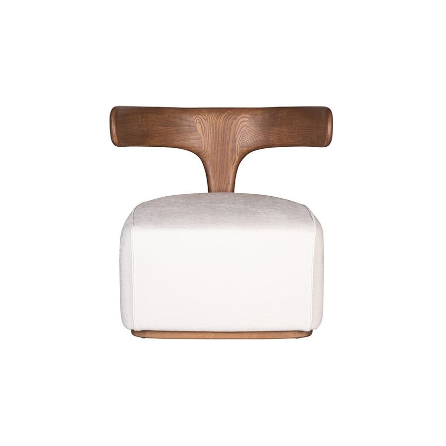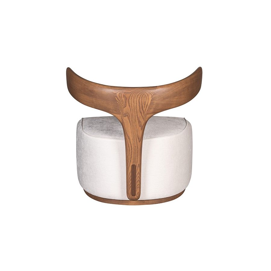 Moby Dick is an armchair with an iconic and enveloping ash backrest evoking a whale tail. Thanks to its elegance and materiality, this graceful, sinuous and versatile armchair adapts to different environments: domestic or contract, expressing a perfect combination of woodcrafting and tailoring.