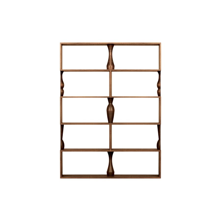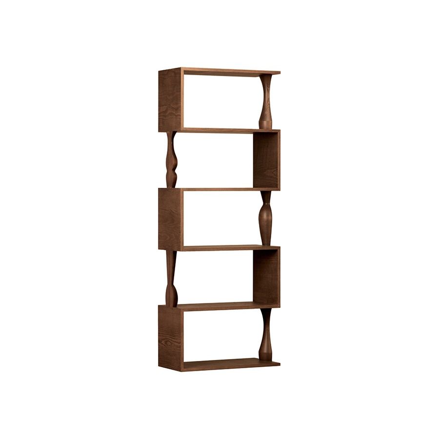 Modular and perfect for any environment, Perbacco is a bookcase in ash wood with an original design. The turned support parts contrast with the light lines of the shelves creating a pleasant contrast of shapes.