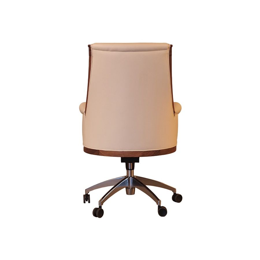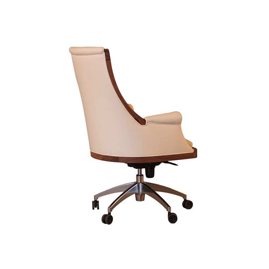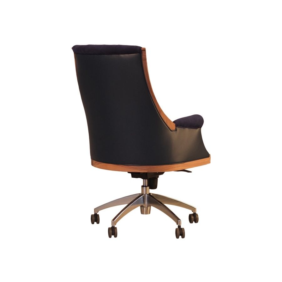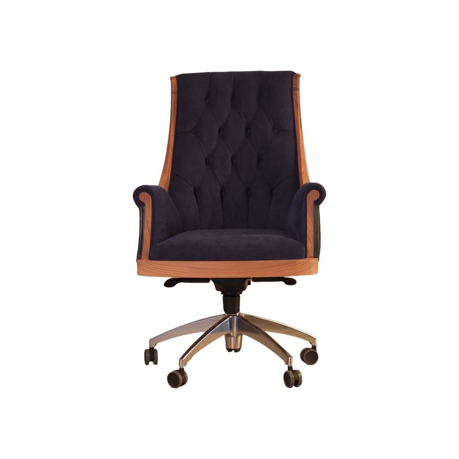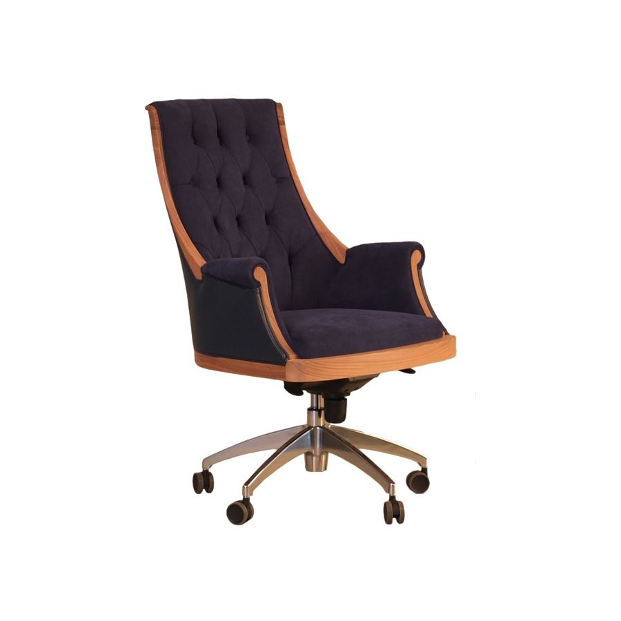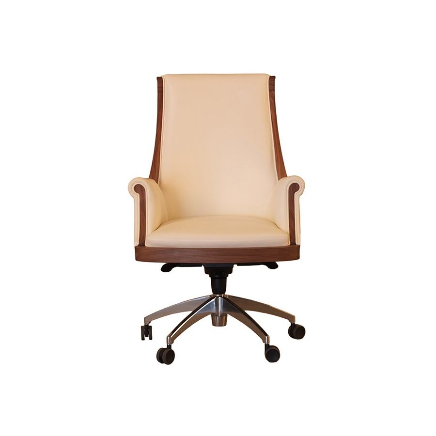 The President armchair is an important office swivel chair, with a wooden frame placed on a steel base with wheels and a shock absorber and adjustable in height. As a new model in the Biedermeier collection, the particular shape of its armrests and its back characterize the President. Elegant in all its details.