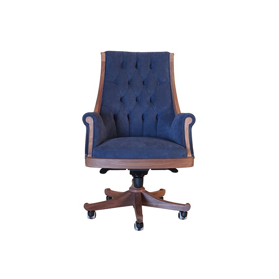 The President armchair is an important office swivel chair, with a wooden frame placed on a steel base with wheels and a shock absorber and adjustable in height. As a new model in the Biedermeier collection, the particular shape of its armrests and its back characterize the President. Elegant in all its details.