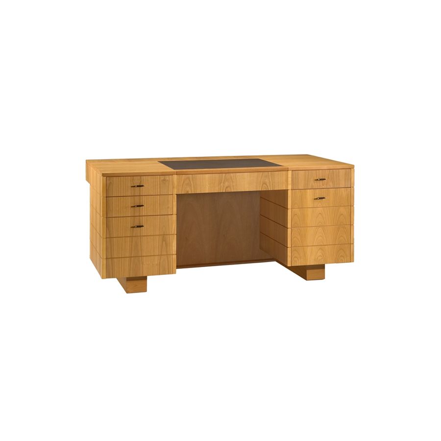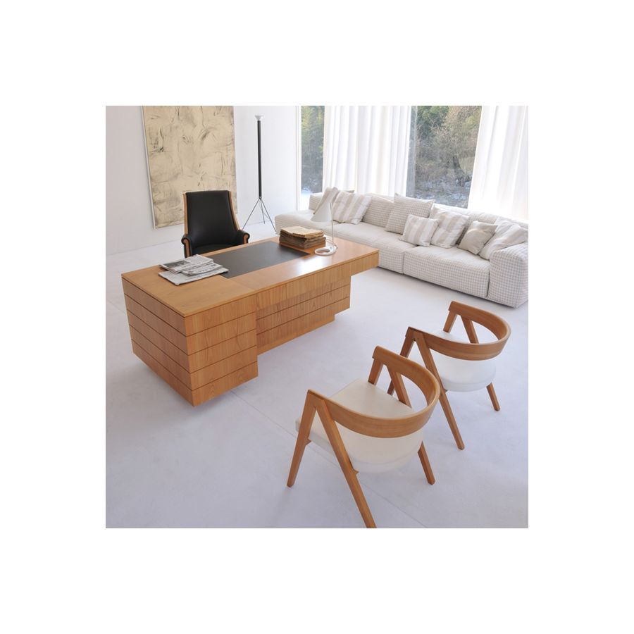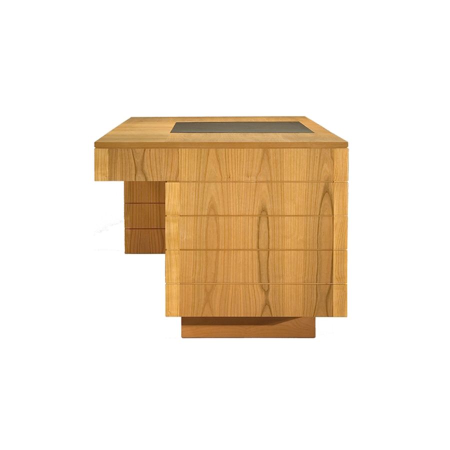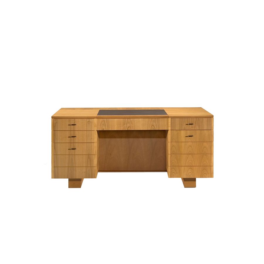 Developed by the MAAM Research Center, the Roma desk project was born from the study of the works of Guglielmo Ulrich. A rigorous, plastic design for this professional desk with important dimensions. Made of cherry wood with a writing surface, covered in leather, and storage compartments, Roma is a highly decorative desk that encompasses in the refined surface workmanship and construction details, craftsmanship and high quality typical of Italian cabinetmaking.