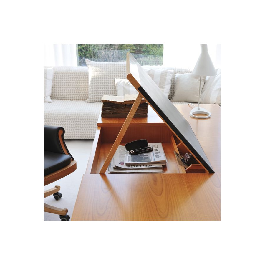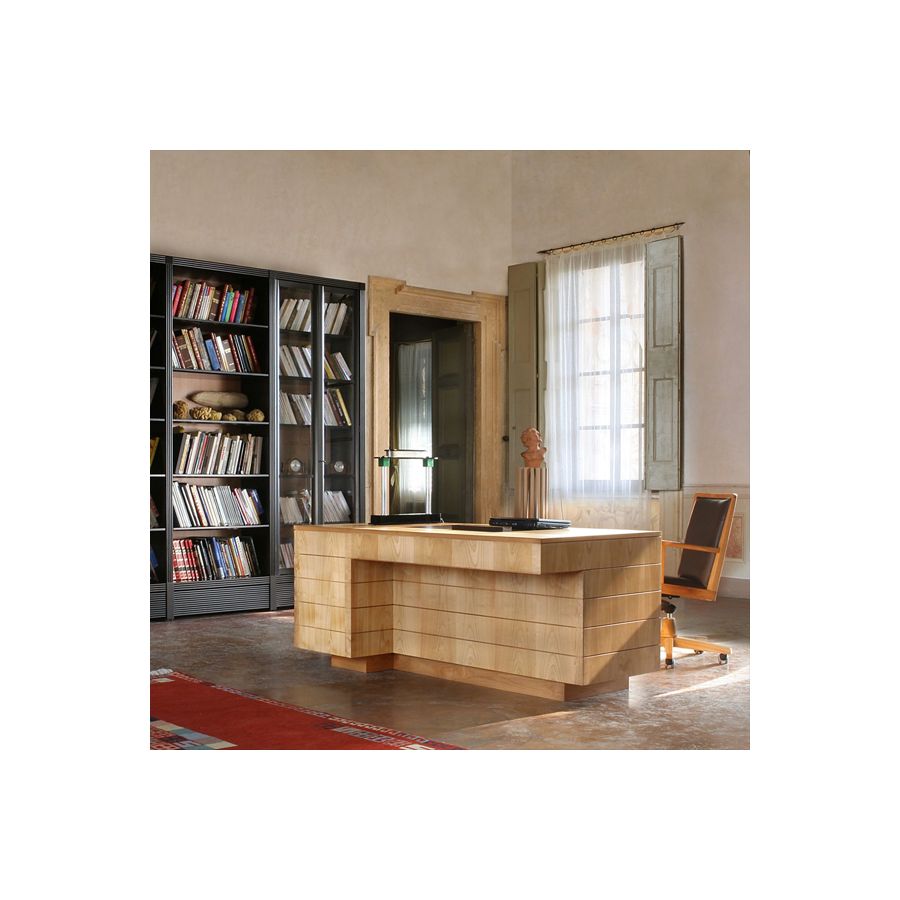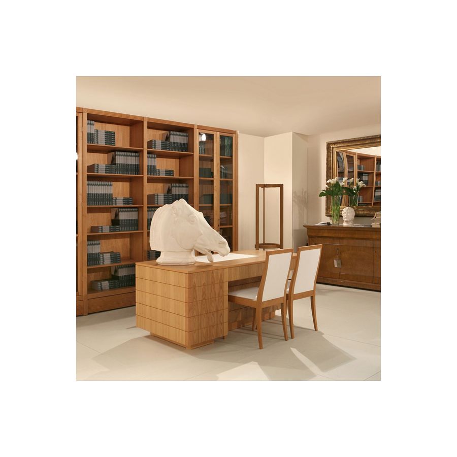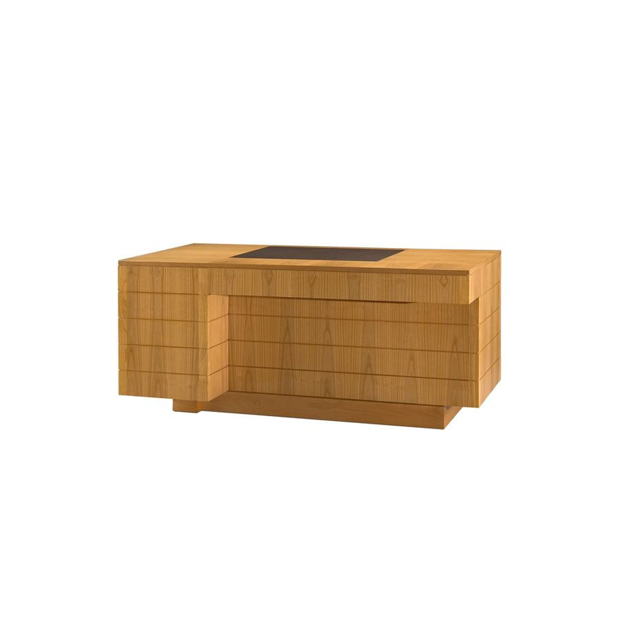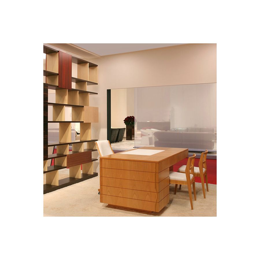 Developed by the MAAM Research Center, the Roma desk project was born from the study of the works of Guglielmo Ulrich. A rigorous, plastic design for this professional desk with important dimensions. Made of cherry wood with a writing surface, covered in leather, and storage compartments, Roma is a highly decorative desk that encompasses in the refined surface workmanship and construction details, craftsmanship and high quality typical of Italian cabinetmaking.