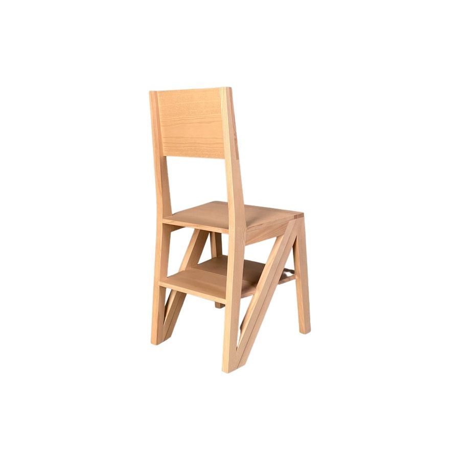 Chair made of solid ash, convertible into a stepladder with magnetic closure.