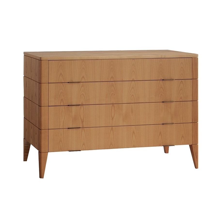 Chest of drawers made of cherry wood with brass handles over the 4 drawers. Fine milling on the sides along the drawers cut. Upon request made of walnut.