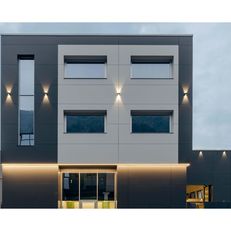 Med en harmonisk och kompakt design erbjuder LumiBox dubbel ljusutstrålning med en 6W LED‑källa och finns tillgänglig i både spot‑ och floodstråleoptik. Det varma 3000K LED‑ljuset skapar en inbjudande atmosfär samtidigt som det säkerställer precis belysning som framhäver arkitektoniska detaljer.