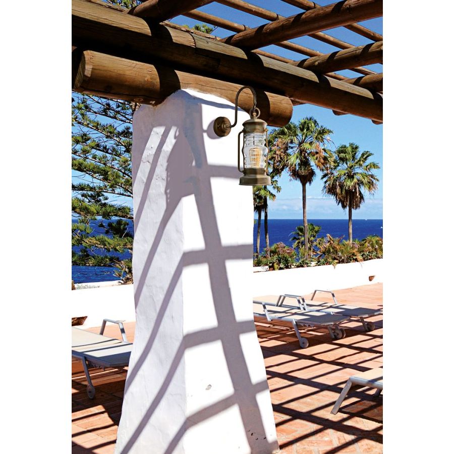 Vi presenterar Cortez Vintage Wall Lamp av Moretti Luce, en utsökt blandning av tidlös design och robust hantverk, utformad för att lyfta vilken utomhusmiljö som helst. Tillverkad i pressgjuten mässing och mässingsplåt, utstrålar denna lampa en vintagecharm som kompletteras av modern funktionalitet.