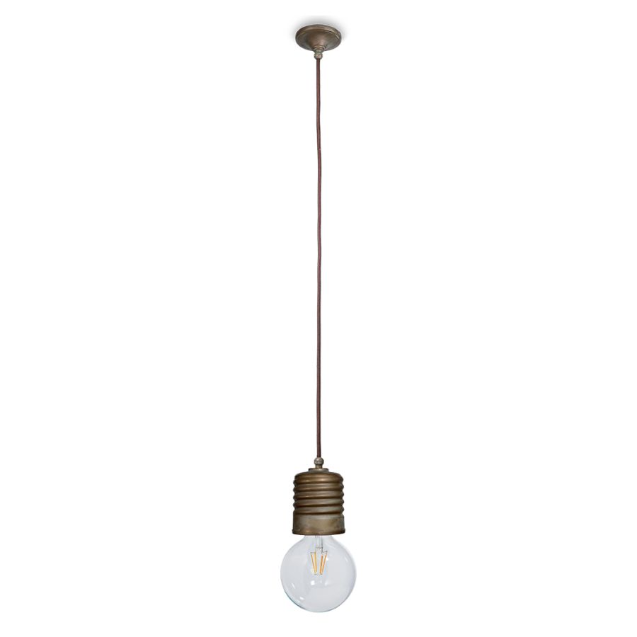 Spiralpendellampan från Moretti Luce exemplifierar rustik elegans i sin renaste form. Denna minimalistiska armatur har en ensam exponerad glödlampa hängande i en kabel, vilket gör den till ett djärvt men nedtonat val för interiörer. Tillverkad i pressgjuten mässing är lampans ytbehandling resultatet av omsorgsfulla hantverkstekniker som säkerställer att varje exemplar är unikt. Finns i tre enastående ytbehandlingar—Antik koppar (.AR), Mörkbrun (.BA) och Antik nickel (.NA)—och förenar sömlöst rustik charm med samtida minimalism.