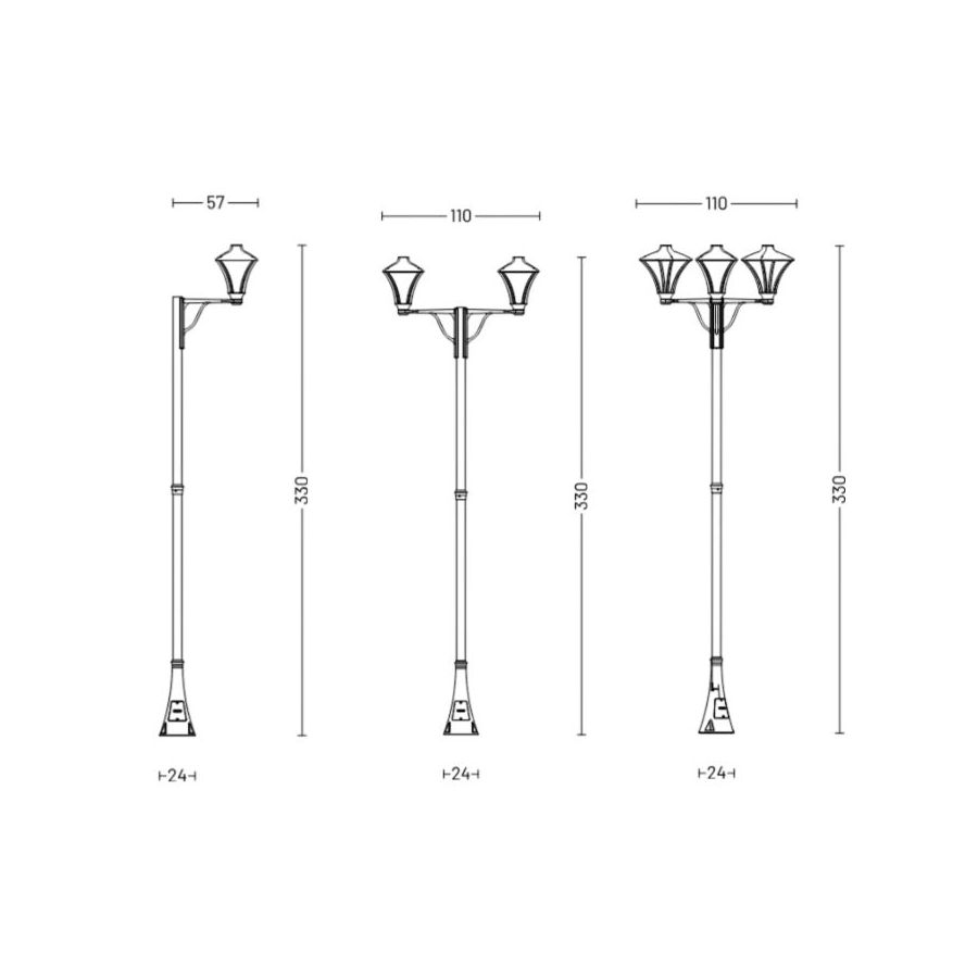 Tillgänglig i enkel-, dubbel- eller trippelhuvudskonfigurationer, erbjuder Splendòr 2 oöverträffad mångsidighet för bostads- eller offentliga utomhusytor. Varje huvud är monterat på en höjd av 330 cm, vilket ger balanserad och funktionell belysning som förbättrar gångvägar, entréer och gemensamma områden.