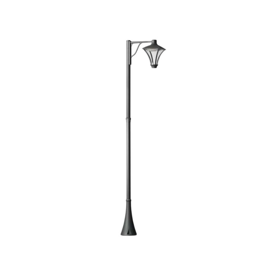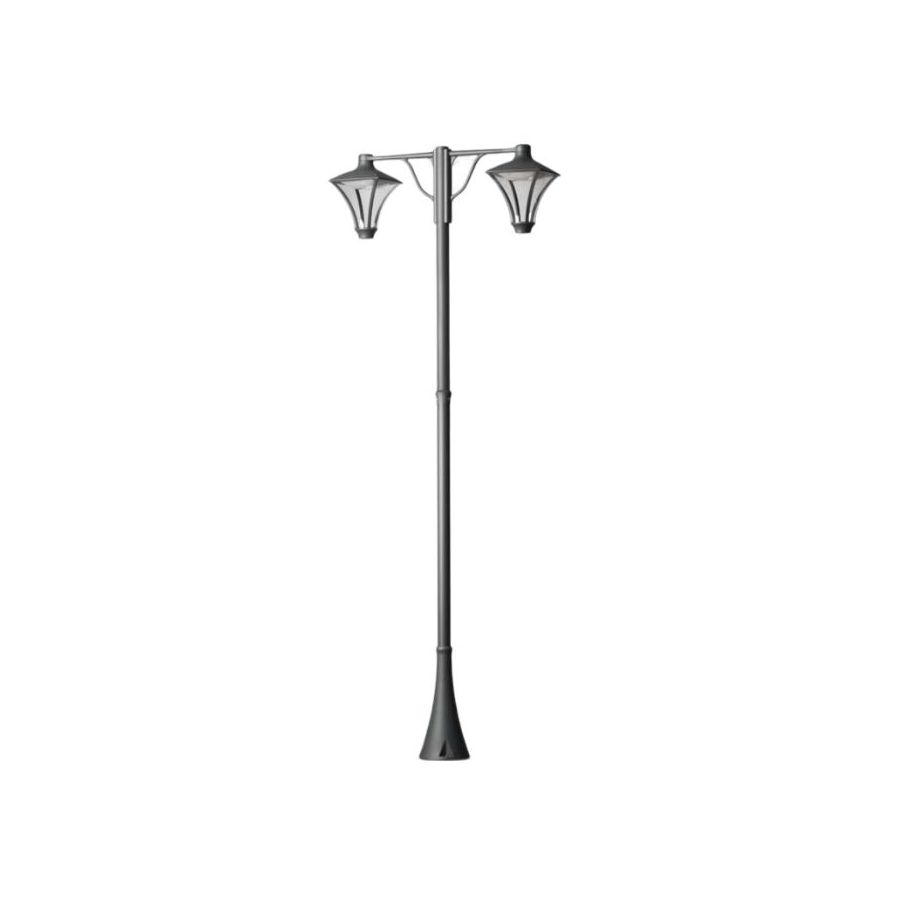 Med en effekt på 29W levererar Splendòr 3 vackert diffust ljus genom sin ultra-klara polykarbonatdiffusor, vilket säkerställer optimal ljusstyrka och en välkomnande atmosfär för utomhusmiljöer. Denna modell finns i enkel-, dubbel- eller trippelhuvudskonfigurationer, vardera monterade på en robust 300 cm lång stolpe, vilket gör den anpassningsbar till olika belysningsbehov och arkitekturstilar.