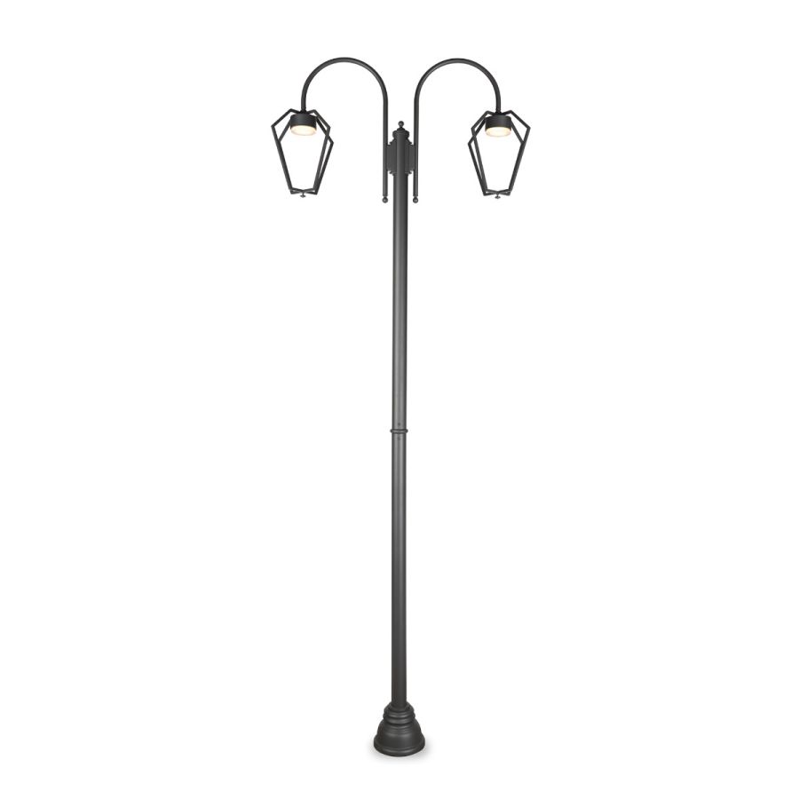 Denna modell har E27-elektrifiering för 2 lampor, vilket gör den kompatibel med LED-lampor, inklusive dimbara alternativ. De hållbara materialen och den effektiva designen säkerställer att denna stolplampa inte bara belyser ditt utrymme effektivt utan också erbjuder energibesparingar på lång sikt. Den finns i flera ytbehandlingar och färger, vilket gör att du kan hitta den perfekta matchningen för din utomhusdekoration.