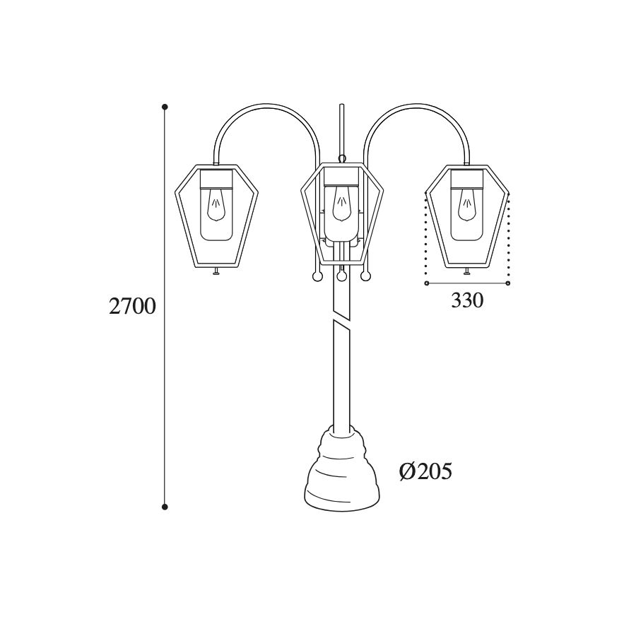 Denna modell har E27-elektrifiering för tre lampor, vilket möjliggör installation av LED-lampor, inklusive dimbara alternativ. Finns i en mängd olika ytbehandlingar och färger, och kan sömlöst komplettera olika arkitektoniska stilar. Den transparenta glasdiffusorn säkerställer en jämn och klar ljusfördelning, vilket får utomhusområden att kännas både välkomnande och trygga.
