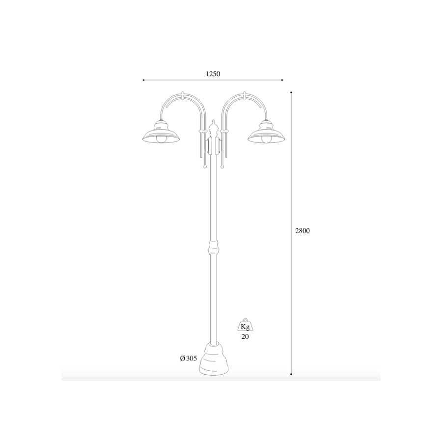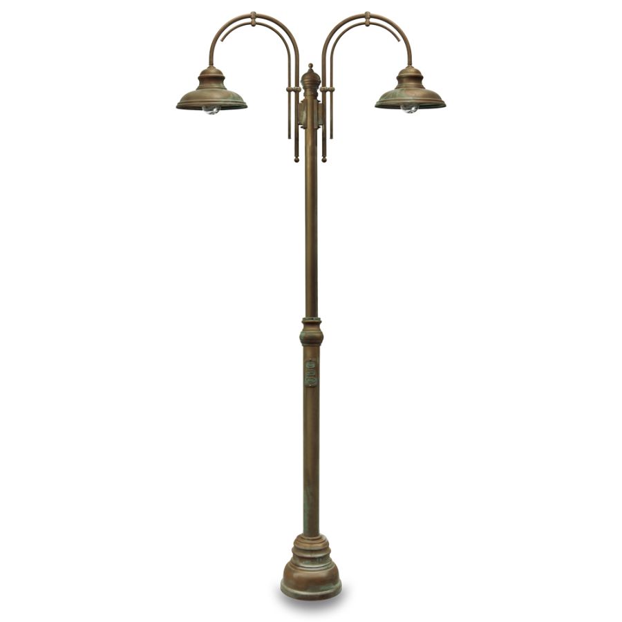 Tillverkad av gjuten mässing och utrustad med en högkvalitativ glasplatta är denna stolpe försedd med två utvändiga lampor, vilket erbjuder ett stilfullt och funktionellt tillskott till din utomhusmiljö.