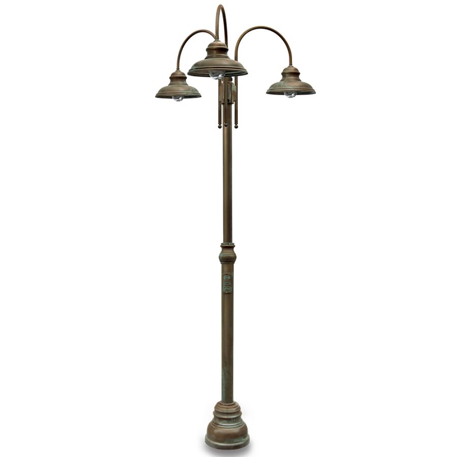 Mill-mässingsstolpen med 3 lampor från Moretti Luce är en enastående utomhusbelysningslösning, perfekt för trädgårdar, gångvägar och rymliga exteriörer.