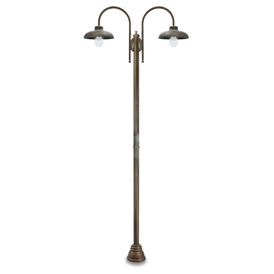 Samoa-mässingstolpen med två lampor från Moretti Luce kombinerar iögonfallande italienskt hantverk med funktionell utomhusbelysning. Med en imponerande höjd på 270 cm är denna stolpe tillverkad i antikkopparpläterad mässing, vilket erbjuder både elegans och motståndskraft. Dess design med två lampor säkerställer förbättrad belysning, vilket gör den till ett idealiskt val för stora utomhusytor såsom gångvägar, innergårdar, trädgårdar eller uppfarter. Samoa-mässingstolpen tillför en känsla av tidlös charm samtidigt som den levererar exceptionell prestanda i alla miljöer.