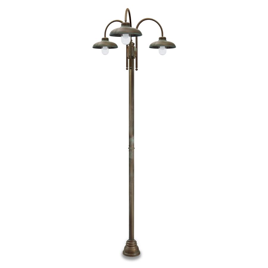 Samoa-mässingsstolpen med tre lampor från Moretti Luce är ett exempel på det finaste italienska hantverket, utformad för att belysa utomhusmiljöer med både stil och funktionalitet. Med en höjd på 270 cm är denna stolpe tillverkad av antik kopparpläterad mässing, vilket gör den till ett elegant men robust tillskott i vilken miljö som helst. Dess trippellampsdesign säkerställer omfattande belysning, vilket gör den idealisk för stora trädgårdar, gångvägar, innergårdar eller vidsträckta uppfarter. Samoa-serien kombinerar tidlös estetik med oöverträffad hållbarhet för att förbättra din utomhusmiljö.