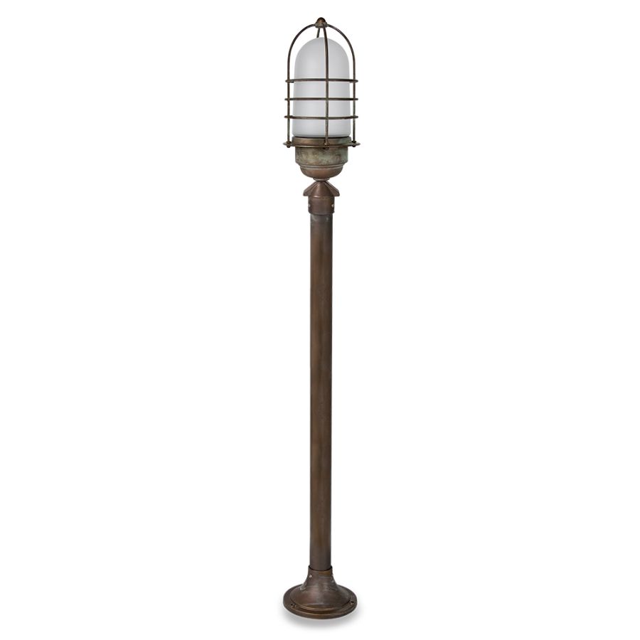 Tillverkad av pressgjuten mässing och solida mässingsplåtar, är denna pollararmatur konstruerad för hållbarhet och elegans. Den förstklassiga glasdiffusorn säkerställer ett mjukt, atmosfäriskt ljus samtidigt som den bibehåller motståndskraft mot väder och vind.