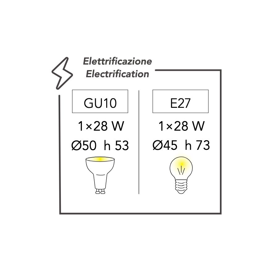 Designad för takinstallation finns denna lampa i olika utföranden för att komplettera skiftande inredningsstilar. Den har flexibla elektrifieringsalternativ med E27- eller GU10-socklar, vilket gör den kompatibel med ett brett utbud av energieffektiva LED-lampor. Detta säkerställer inte bara betydande energibesparingar utan också förbättrad ljusflexibilitet anpassad efter dina behov.