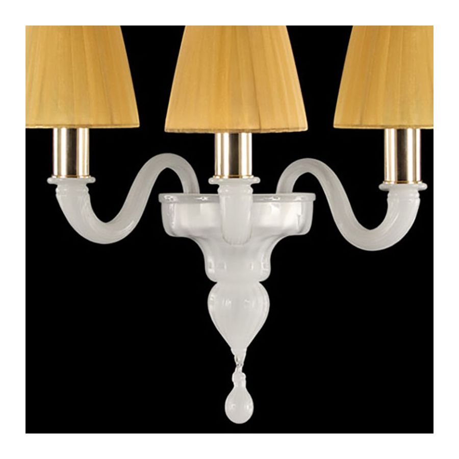 The Murano lamp Chapeau is a classic and essential lamp, it is handcrafted using high quality materials. This wall sconce is finished with handmade lampshades, and it is available in many different colours, sizes and number of lights.