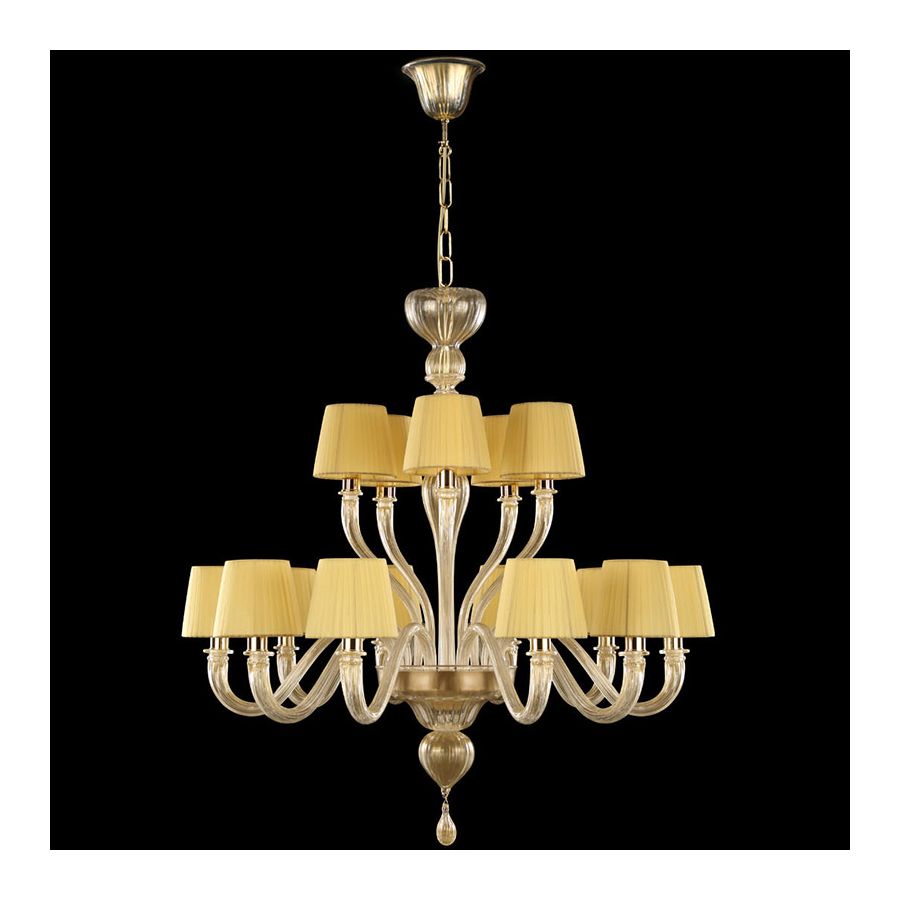 Chapeau is a classic and essential chandelier, it is handcrafted using high quality materials. This Murano glass chandelier is finished with handmade lampshades, and it is available in many different colours, sizes and number of lights.